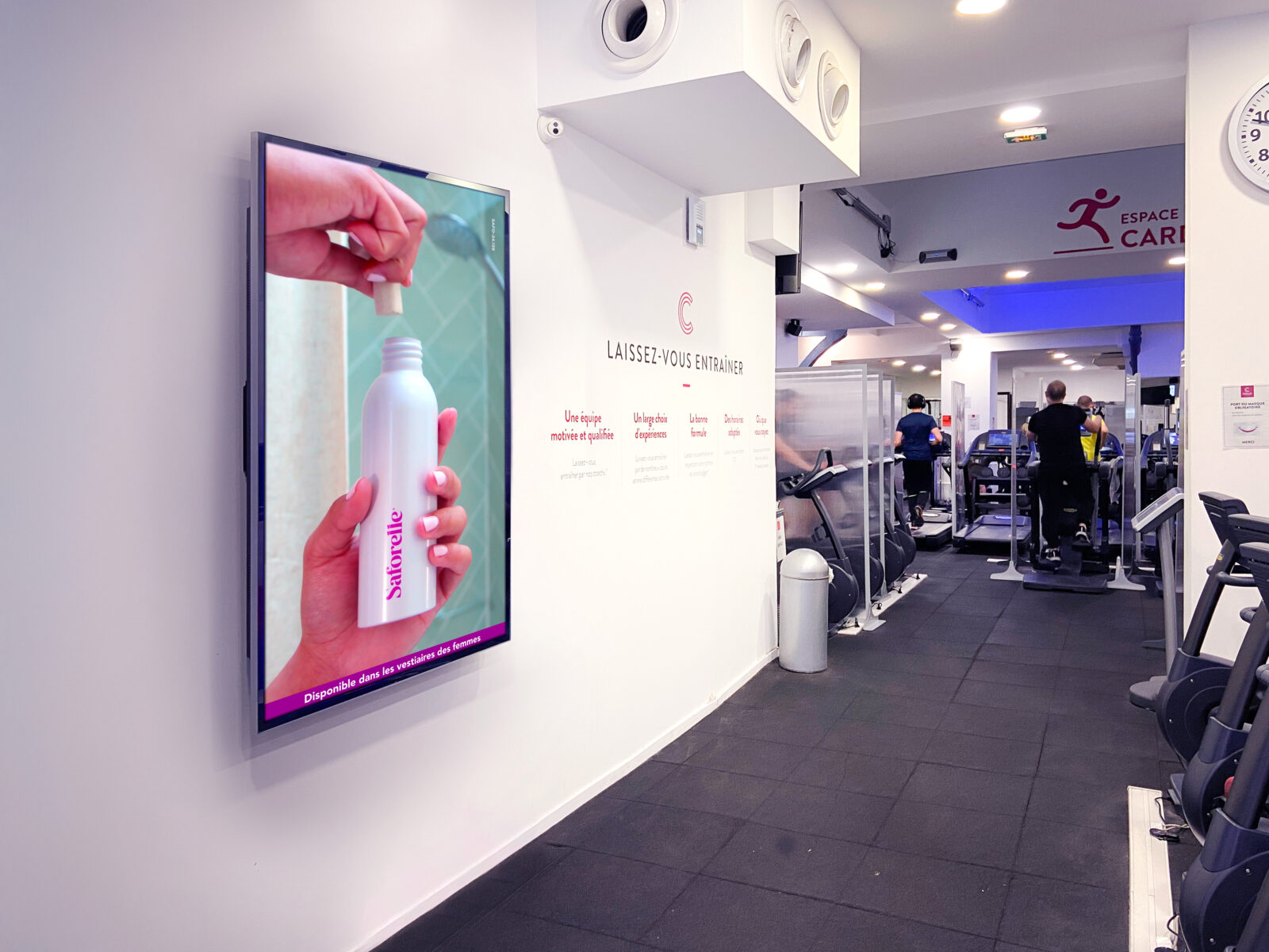 C’est dans cette logique que Saforelle a activé le réseau DOOHYOULIKE Sport, en combinant DOOH indoor et échantillonnage au cœur des salles.